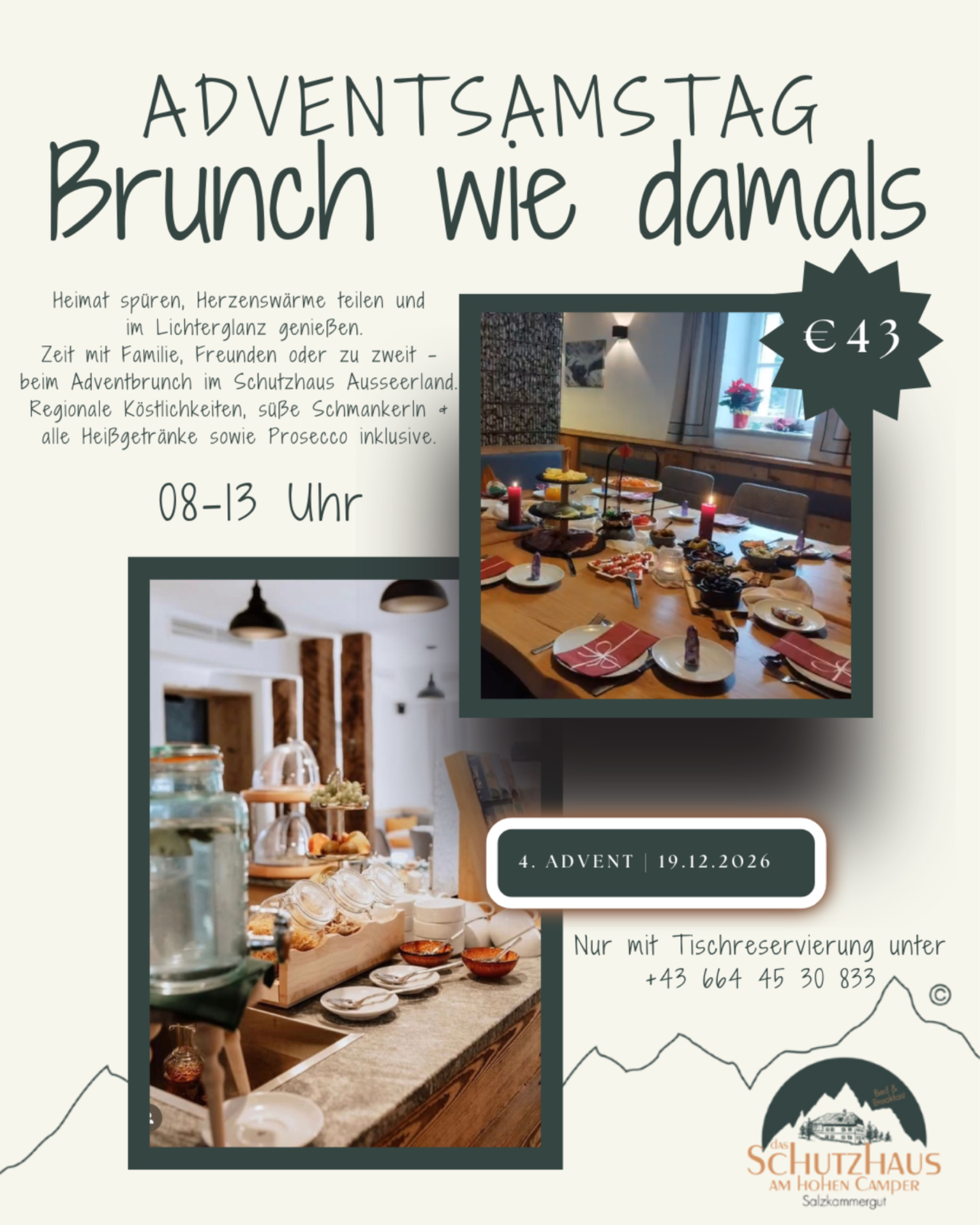 Lass dich vom Zauber der Vorweihnachtszeit berühren. Beim Advent Brunch in Bad Aussee erwarten dich festliche Köstlichkeiten, gemütliche Atmosphäre und echte winterliche Ausseerland-Stimmung. Ein Highlight für Genießer!