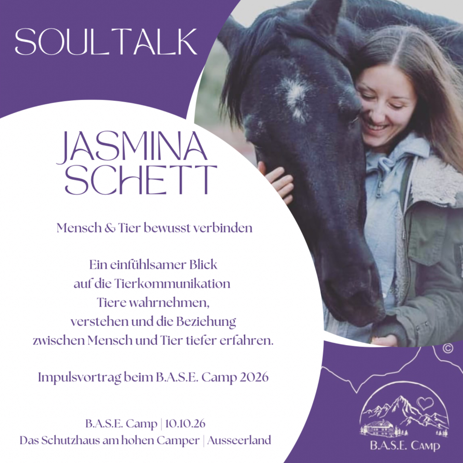 Beim B.A.S.E.Camp 2026 gibt sie als Impulsgeberin einen Einblick in diese besondere Form der Tierkommunikation – für mehr Verständnis, Verbindung und Harmonie zwischen Mensch und Tier.